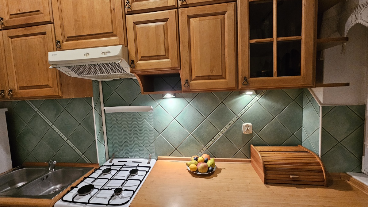 - umeblowane (m.in bardzo duży pawlacz w przedpokoju i duża szafa w zabudowie w sypialni) i wyposażone (pralka, lodówka, kuchenka z piekarnikiem),