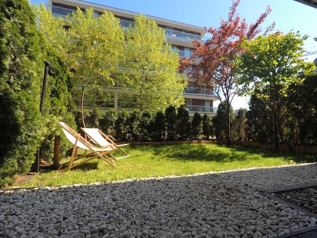Ogromnym atutem apartamentu jest prywatny ogródek o powierzchni 40 m2 ogród oraz taras z meblami ogrodowymi i leżakami.