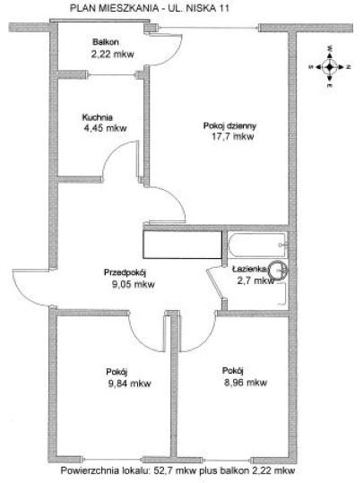 • 3 nieprzechodnie pokoje, widna i wyodrębniona kuchnia, loggia (szczegóły na planach).